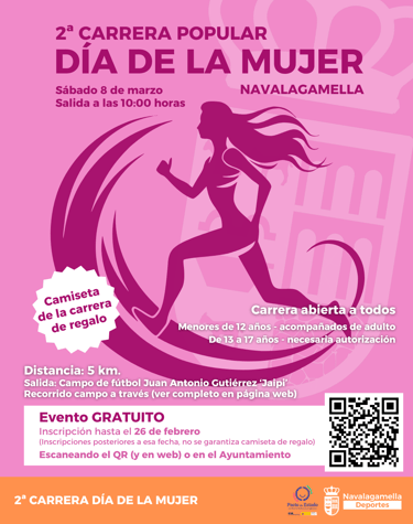 El Área de Deportes del Ayuntamiento de Navalagamella organiza la 2ª Carrera Popular conmemorando el Día de la Mujer.