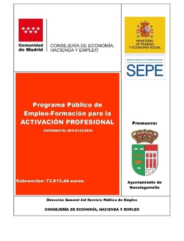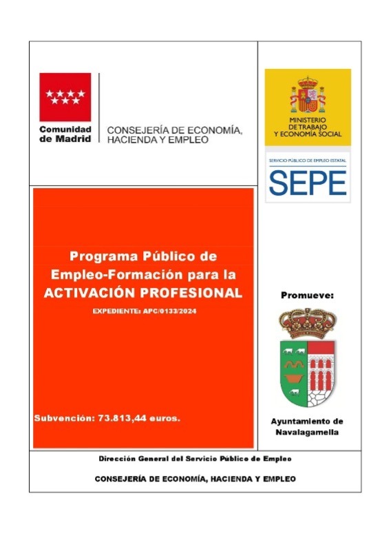 Gracias a la subvención concedida a este Ayuntamiento por la Consejería de Economía, Hacienda y Empleo de la Comunidad de Madrid procedente de los fondos que el Servicio Público de Empleo Estatal distribuye para su gestión por las comunidades autónomas para la puesta en marcha de programas y políticas activas de empleo, desde el pasado 1 de agosto de 2024 se viene desarrollando en nuestro municipio un Programa público de empleo-formación para la ACTIVACIÓN PROFESIONAL.