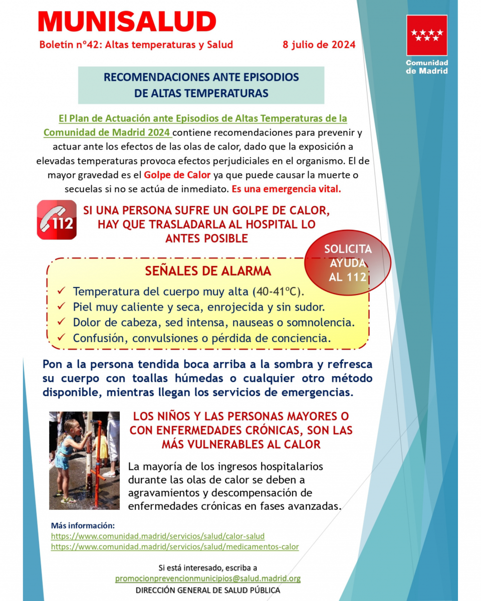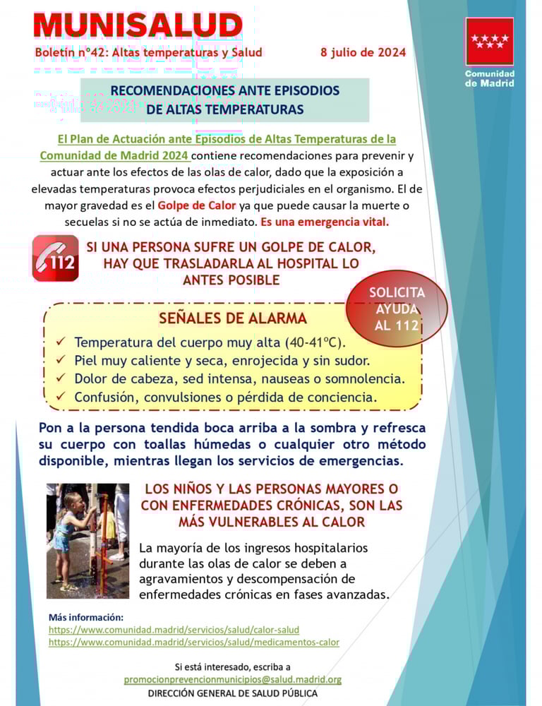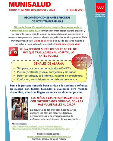 Compartimos las recomendaciones de la Comunidad de Madrid ante episodios de altas temperaturas en este verano